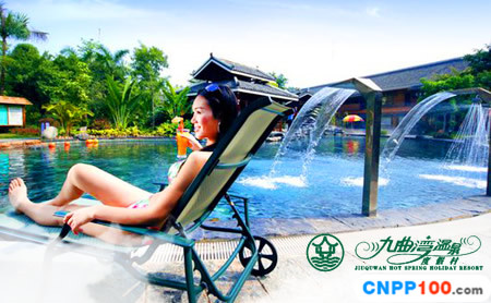 九曲灣溫泉度假村位于廣西首府南寧市三塘鎮(zhèn),座落在風(fēng)光秀麗的九曲灣農(nóng)場(chǎng),距市中心僅12公里,交通十分便捷,獨(dú)享優(yōu)越的地理環(huán)境。溫泉水由地下1219.94m深的地?zé)崽飶?fù)合圈噴涌而出,日涌水量達(dá)744m3/d,水溫在53.5℃—61℃之間,水質(zhì)晶瑩滑爽,泉水中含有偏硅酸、偏硼酸、硫化物、氟、氡、鋰、鍶等30多種對(duì)人體有益的微量元素和礦物質(zhì),是一種罕有的重碳酸鈉型溫?zé)峒?jí)含氡、偏硅酸的氟醫(yī)療熱礦水。對(duì)多種慢性疾病,如神經(jīng)性麻痹、癱瘓、風(fēng)濕性關(guān)節(jié)炎、腸胃病、心臟病、高血壓、糖尿病、動(dòng)脈硬化等有明顯的輔助治療功效,并具有防治皮膚病、抑制肥胖、美容肌膚等保健醫(yī)療作用。