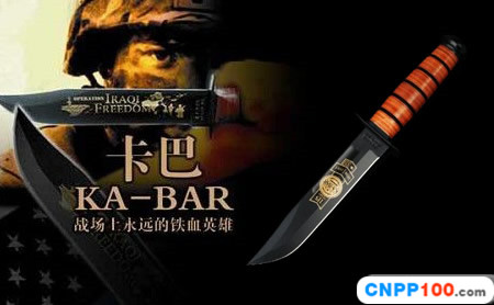 私藏KA-BAR USMC軍刀Ka-bar 刀廠以前叫做Union Razor Co.,被稱為Ka-bar 是由于一位獵人的推薦信函。這位獵人在打獵的途中遇到了熊,子彈用盡的他只好拿起了他那由Union Razor Co.所造的高品質(zhì)獵刀來與熊搏斗,因而保住了性命,他在信上寫到這把刀可以殺熊(Kill a bear ),但是因為這位獵人的教育層度不高,將它寫成Kil a bar,后來又被人們縮寫成Ka-bar,因此Ka-bar這個名字便被大家所傳頌,甚至比Union更有名氣,因此在1951年時,Union Razor 公司正式改名為Ka-bar ,但在此之前Union公司便已在他們生產(chǎn)的刀上打上Ka-bar的標志。