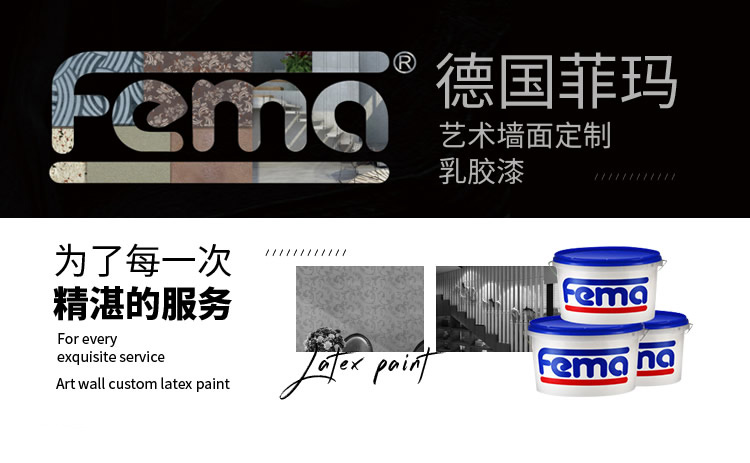 始于1984年德國,專業(yè)從事裝飾涂料及進出口貿(mào)易、裝飾施工和個性化裝飾設(shè)計及服務(wù)的綜合性公司,是藝術(shù)涂料行業(yè)頗具實力的品牌。菲瑪致力于提供專業(yè)的墻面整體解決方案,主營藝術(shù)墻面、乳膠漆、水性木器漆等產(chǎn)品。2014年6月四川菲瑪貿(mào)易有限公司被授權(quán)成為大中華區(qū)總代理,憑借其先進的生產(chǎn)工藝、源于大自然的創(chuàng)意靈感、專屬的施工團隊,F(xiàn)EMA品牌成功進入國內(nèi)市場。
