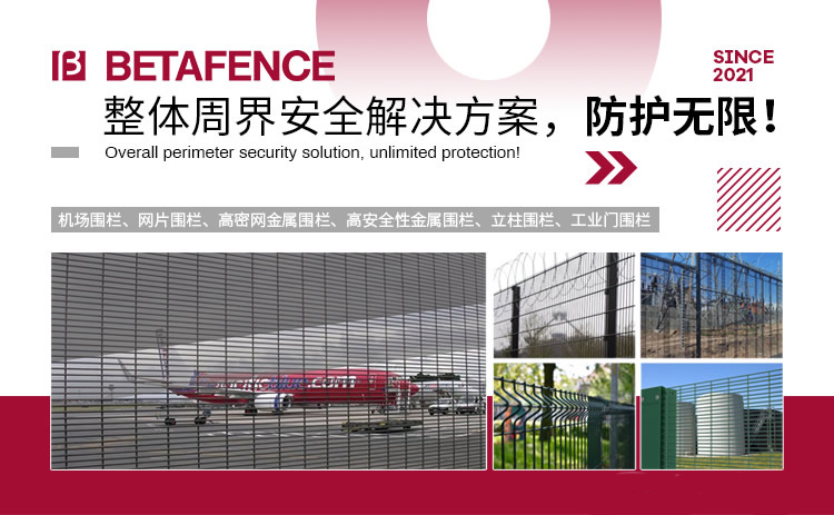 BETAFENCE隸屬于PRÆSIDIAD集團(tuán),是周界安防領(lǐng)域的全球市場領(lǐng)導(dǎo)者,有著140多年的發(fā)展經(jīng)驗,全球10個生產(chǎn)基地,30多家銷售辦事處,業(yè)務(wù)覆蓋100多個國家。主營機(jī)場圍欄、網(wǎng)片圍欄、高密網(wǎng)金屬圍欄系列、高安全性金屬圍欄系列、立柱圍欄系列、工業(yè)門圍欄系列產(chǎn)品,產(chǎn)品服務(wù)機(jī)場港口、軌道交通、核電核能、石化能源、工業(yè)園區(qū)以及高端民用等多個領(lǐng)域。