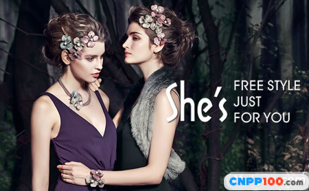 She's源于歐洲,融歐美流行時尚與中國傳統(tǒng)文化完美結(jié)合,全力打造國際、高雅、時尚的she's形象。截取國際流行元素,綜合自身設(shè)計(jì)優(yōu)勢, She's推出發(fā)飾、 鏈飾、圍巾、胸針、太陽眼鏡及其它系列飾品,以適合25-35歲時尚女性的需求。